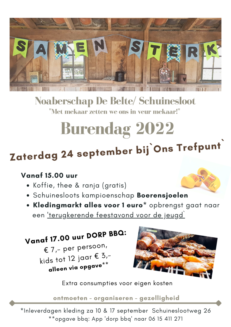 Let op! Voor de BBQ is opgave nodig, stuur vóór 17 september een appje of berichtje met 'dorp bbq' naar 06 15 411 271